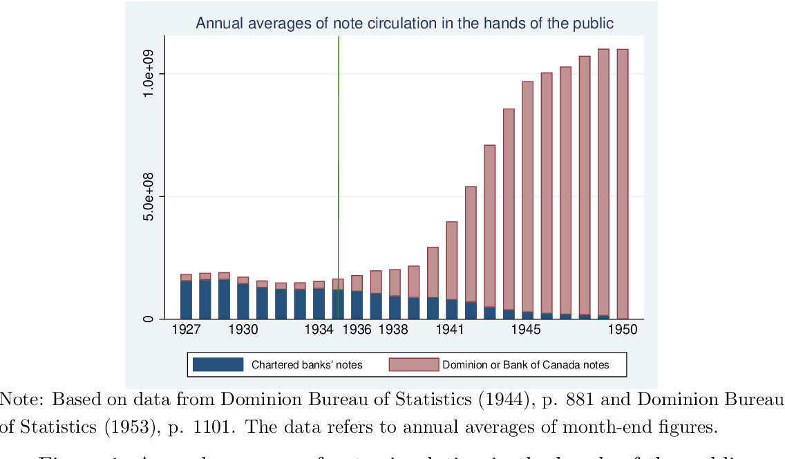 This paper does a good job of describing the evolution from “private” to “public” money issuance in Canada over the revolutionary monetary period from 1920-1950. The author frames Central Banks as “competition” to private money issuance. While this is technically true, in my mind it is not fair to just describe it as fair competition because they do not compete with the same tools - one has the Treasury as a “phone a friend” and its creator can enact laws that ban its “competition”.